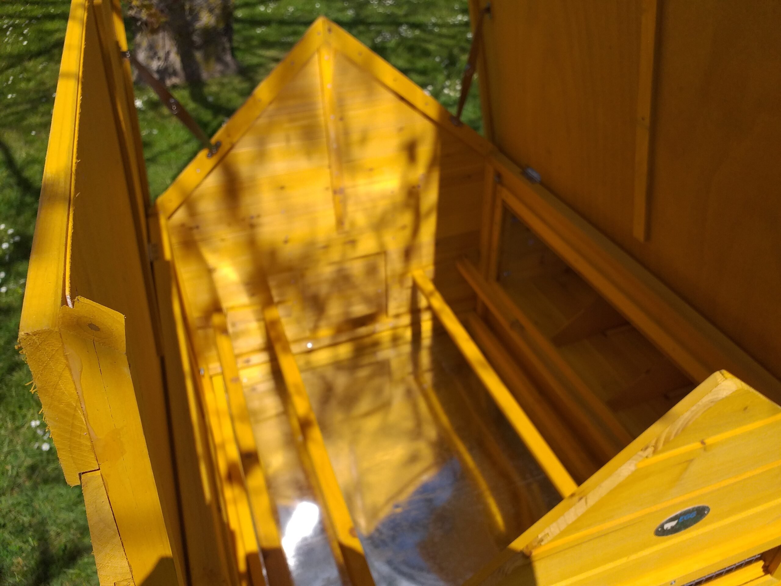 Nest box (internal): 102cm (W) x 32cm (D) x 30cm (H at highest), 25cm (H at lowest)