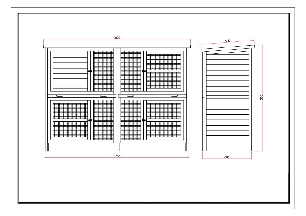 Hutch: 180cm (L) x 65.5cm (W) x 130cm (H)